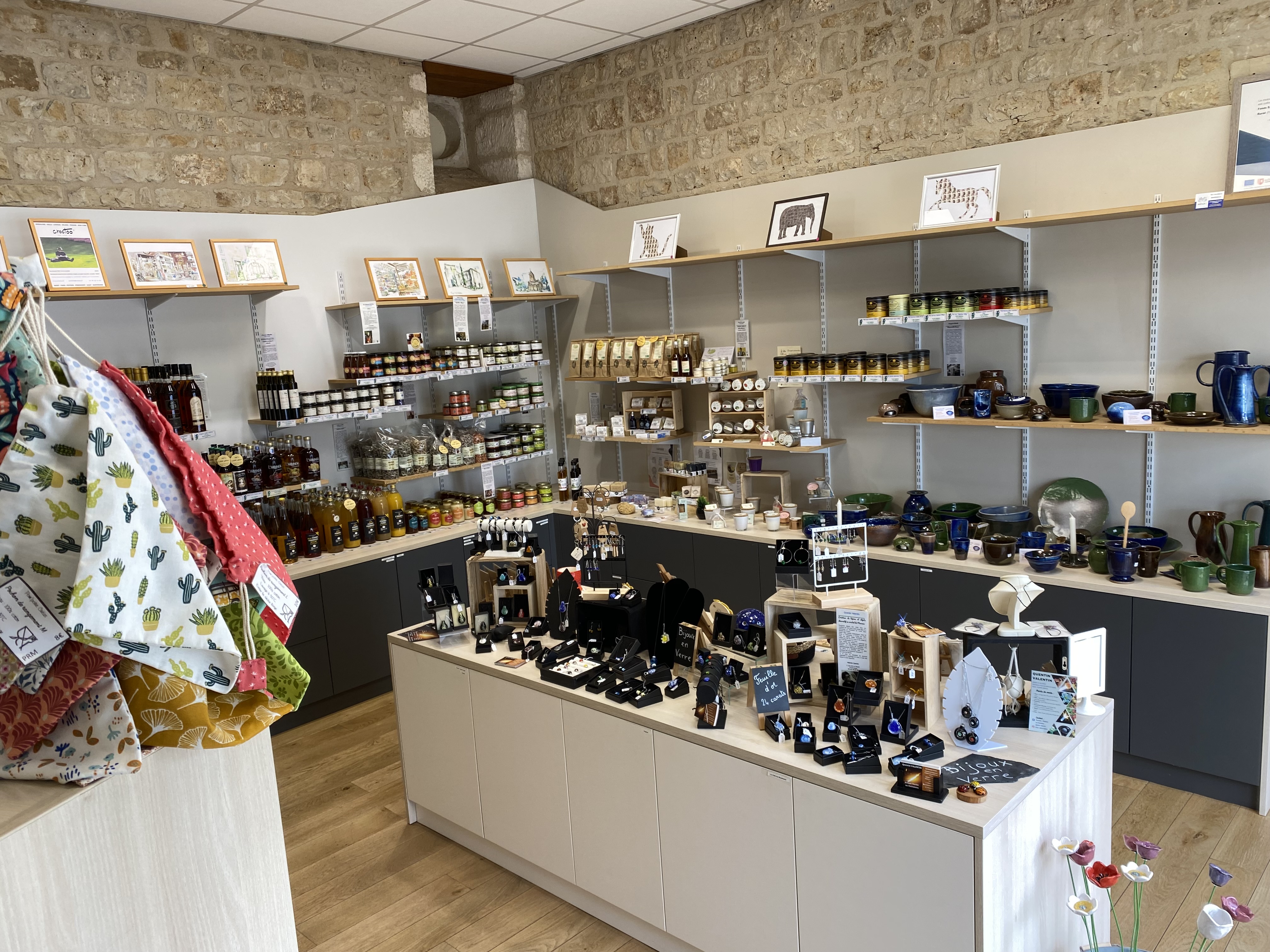 Un coin boutique dans lequel vous trouverez toute une gamme de produits de bouche et de savoir-faire issus d’une fabrication artisanale de qualité. Que vous soyez gourmands (bière artisanale, terrine, jus de fruits, biscuits…), amateurs d’artisanat (bijoux, poterie…) mais aussi de souvenirs. Au sein de notre boutique, retrouvez également un espace librairie avec quelques ouvrages sur le Mellois.